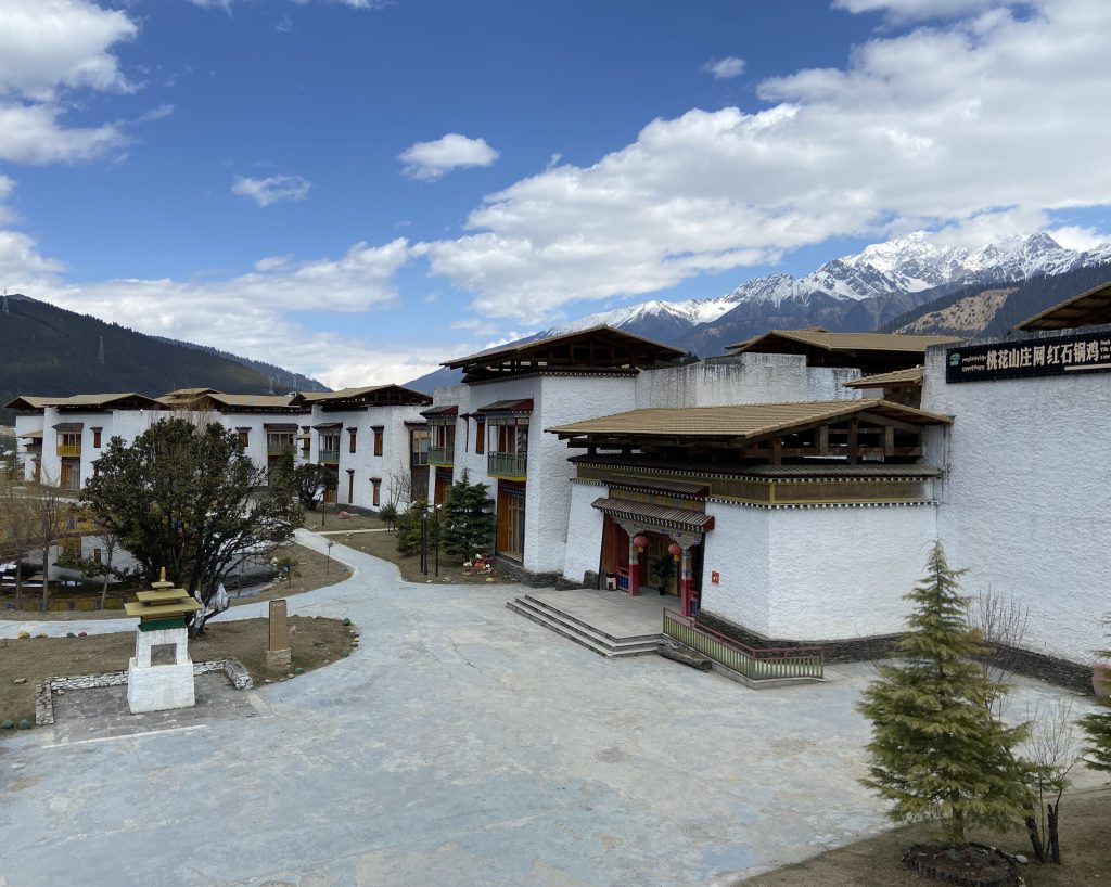 中午達到魯朗鎮附近的渡假村,是魯朗鎮的核心旅遊發展項目,由廣東省對口援建,2011年被列為重點援藏工程。該項目以藏族文化、自然生態為核心的開展理念。項目開發面積廣闊,達1300 畝,包括迎賓大樓廣場,酒店集群,商業街等建築發展項目。