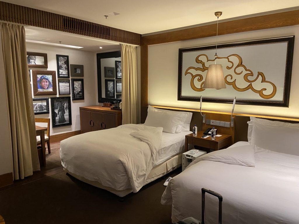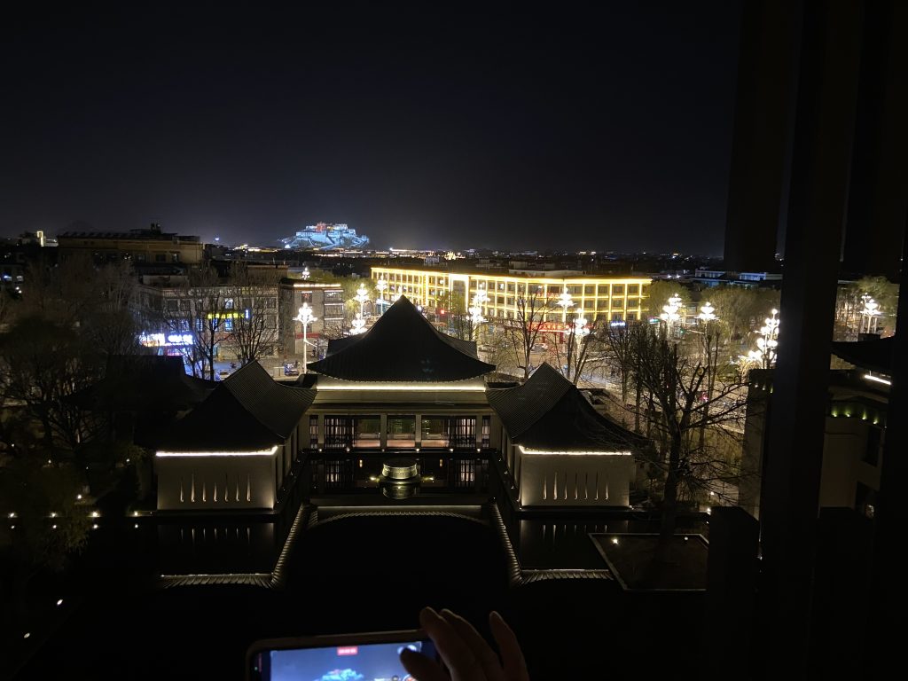 晚上我們入住豪華的 瑞吉酒店(St Regis Hotel)。我們更編排入住一間套房,房間寬敞舒適。晚上我們一團人到酒店主樓六樓的咖啡酒廊喝茶,那𥚃可欣賞拉薩的夜景,並遠眺有夜燈照亮的布達拉宮。