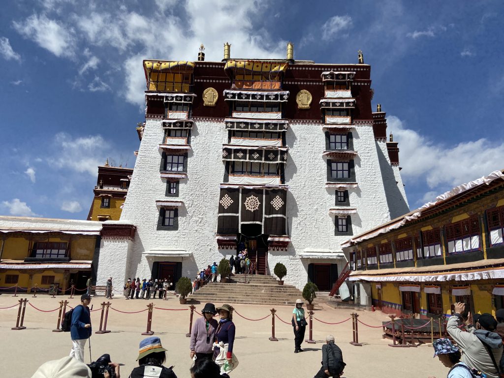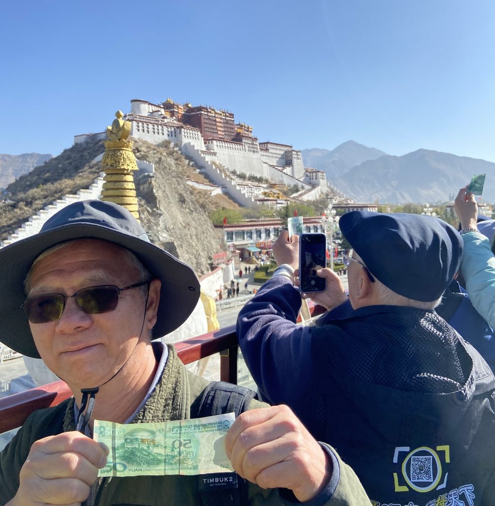 布宮十分宏偉,我們先在拉宮廣場前拍照。當然有到觀景台拍攝五十元人民幣上那拉宮的景象,每個人都手拿著一张五十元人民幣鈔票以拉宮作背景。團友又跑到廣場中央拍攝拉宮倒映照。當地的導遊姑娘很落力的爬在地上替各團友拍攝到以拉宮倒映為背景的照片。