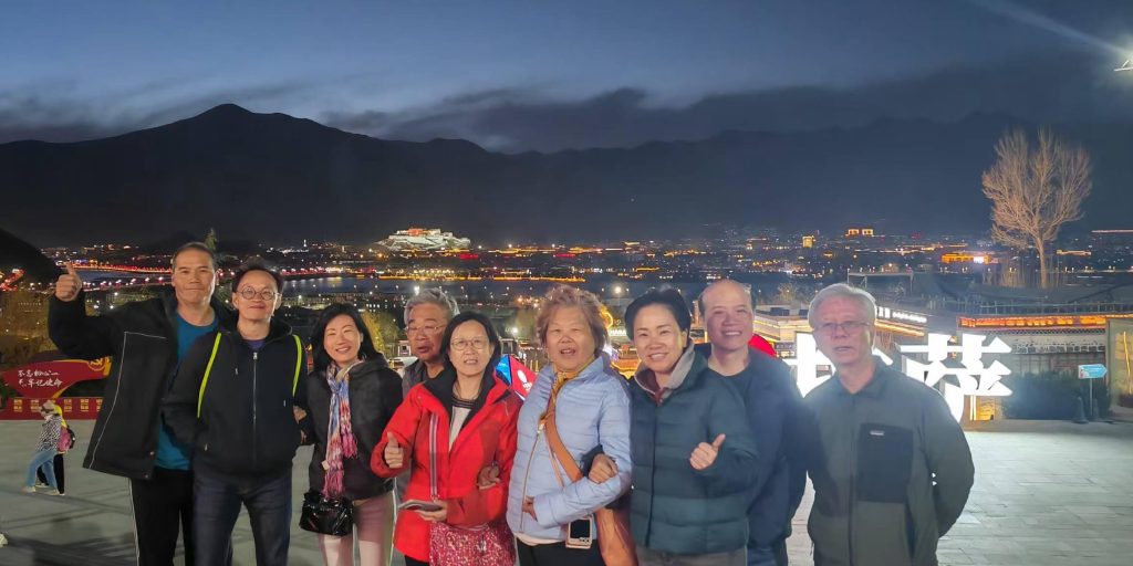 看完表演,各團友在劇場前台階欣賞拉薩的夜景,以及合拍團體照。