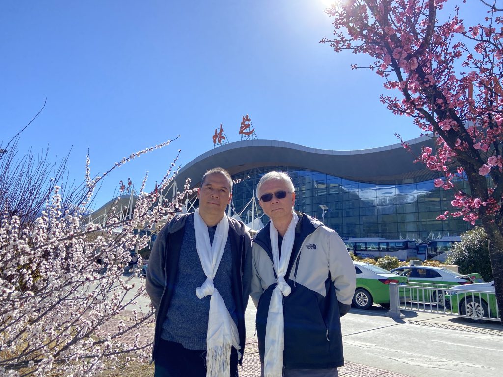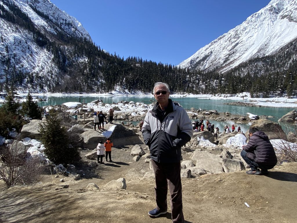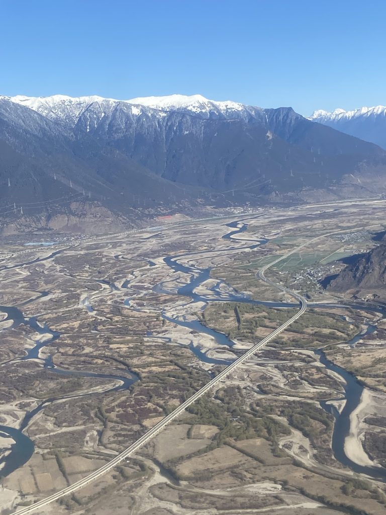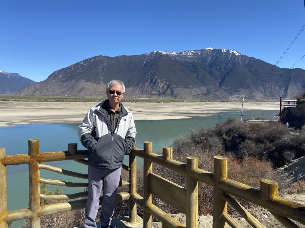 早上起牀,走出客房的陽台,眼前又是一片漂亮的景色。渡假園區內的樹木已長出幼嫩的綠葉,襯托著正在盛開淡紅的桃花。不遠處是雅魯藏布江,碧綠的江水在泥黃的淺灘上緩緩流動。遠處則是綿延的山巒,晨曦照耀在雪山頂特別光輝明亮。背後更是一片萬里無雲蔚藍的天空。我坐在陽台上足足一刻鐘,欣賞那動人的景觀,感受那晨早的清新氣息。