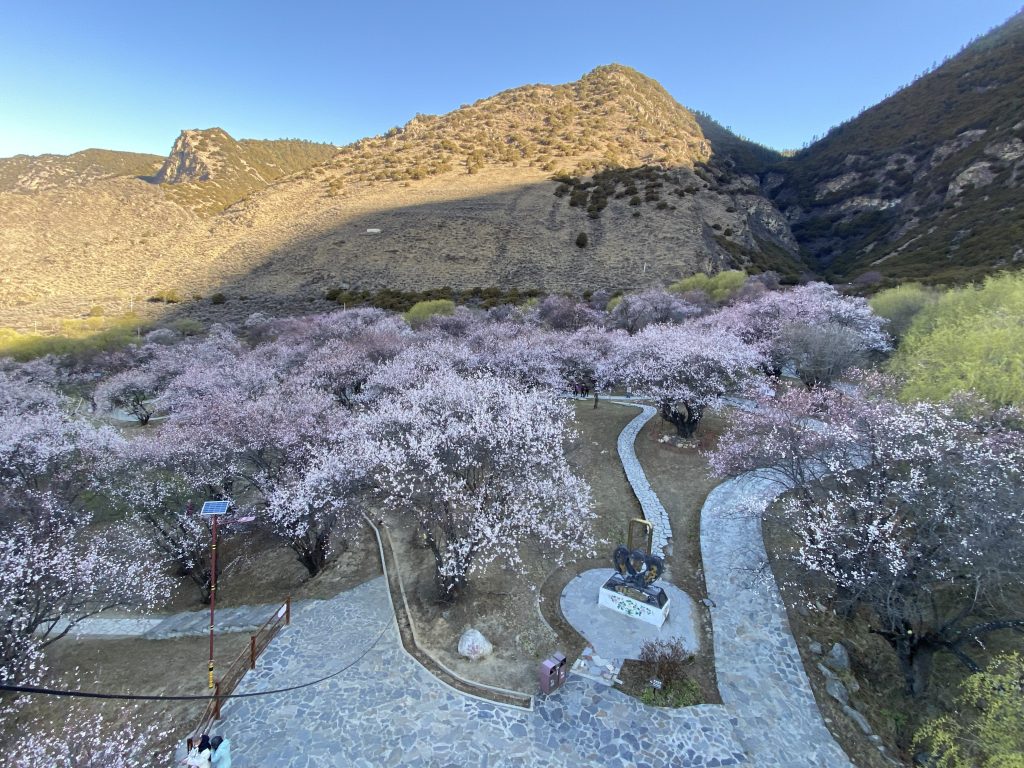 早上先去參觀嘠拉桃花村,位於林芝市區外約12公里。村內有1200株野生桃花,每當春天來到,桃花次第綻放,漫山粉紅霞蔚,山野一片明媚。每年舉辦的桃花節期間吸引十多萬遊客來參觀。當天到村內參觀,桃花已盛開,真有如置身世外桃園之感。