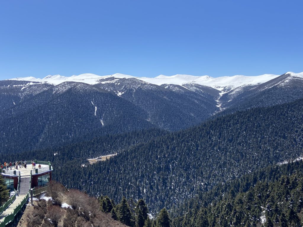 我們一團人到了魯朗林海景區,我們在景區服務中心附近欣賞漂亮的風光。從服務中心有一樓梯步道約一公里下到圓型觀景台,可以提供二百七十度廣泛廣闊視野觀賞林海景況。但礙於地勢頗高又要趕時間去午膳,我們沒有下去觀景台錯過了更親近的欣賞林海景色。