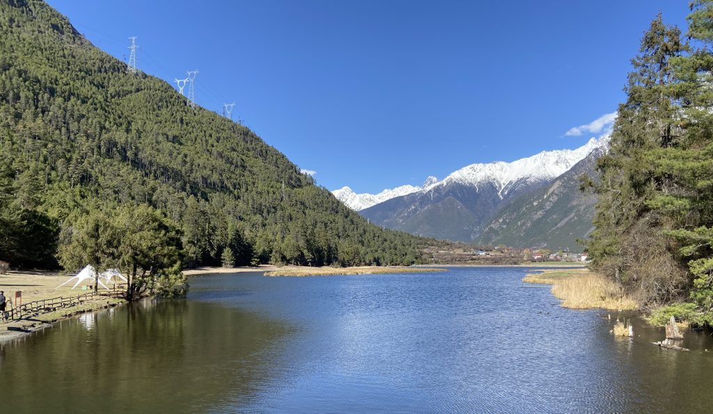 下午去了嘠朗湖,是西藏的聖湖之一。 湖區四周被雪山、原始森林環繞。湖畔存有公元100多年前建立的嘎朗王朝遺址及後裔居住的嘎朗村。景區設有木棧道、觀景平台及露營區域。當天桃花盛開,景色尤為漂亮。