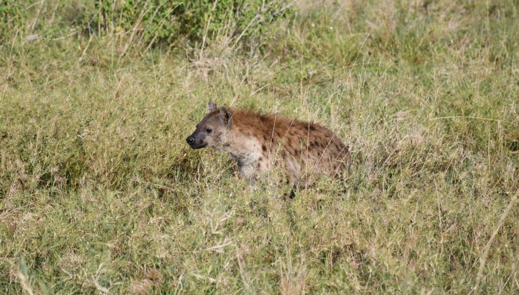 過了一會兒,我們看到幾隻斑鬣狗(hyena) 在陪廻。牠們是吃被獵殺動物的屍肉,我想附近一定有一些被獵殺的動物屍體。